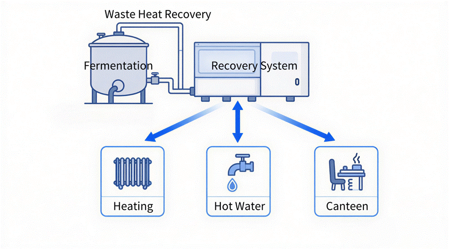 While advancing energy decarbonization, Bloomage also maintains a strong focus on continuous optimization of production processes to enhance energy efficiency. By systematically recovering industrial waste heat generated during fermentation processes and converting it into a stable heat source for facility heating, hot water supply, and the employee canteen, the company transforms “waste heat” into “usable energy” within a closed-loop system, enabling cascade utilization of energy.